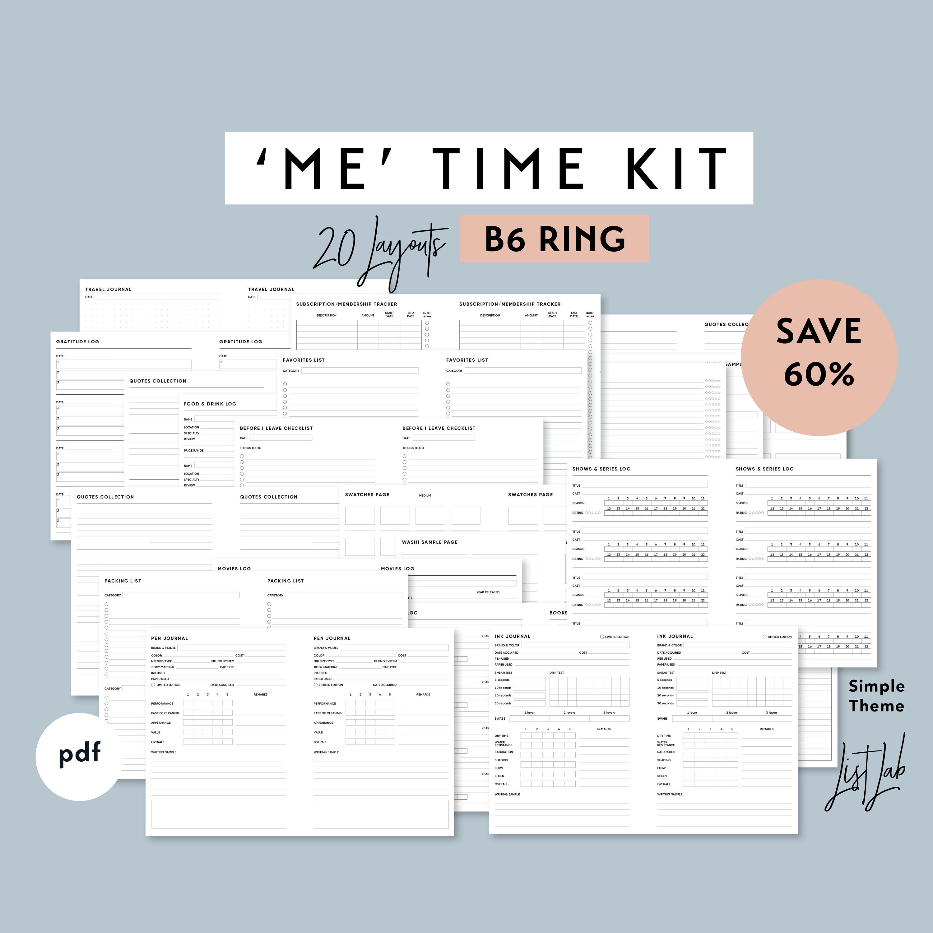 B6 Ring Size Me Time Kit For Ring Planner Printable Pdf Etsy Singapore