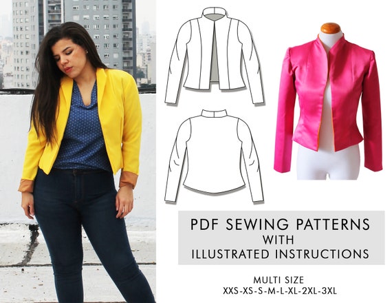 Blazer Pdf Sewing Pattern Office Jacket Yellow Blazer Etsy